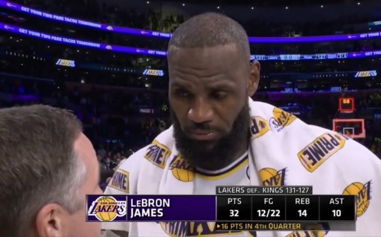 10月27日訊 NBA常規(guī)賽,湖人主場131-127逆轉(zhuǎn)國王。賽后,詹姆斯接受了采訪。