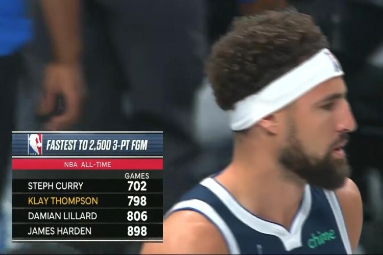 水花!克萊投中2500記三分用798場(chǎng) 史上僅庫(kù)里比他所用場(chǎng)次更少