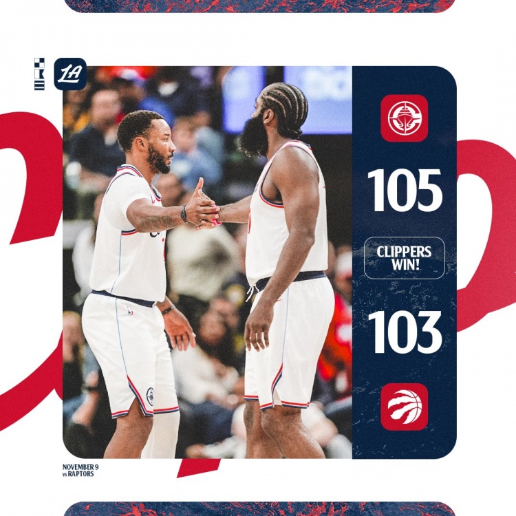 11月10日訊 NBA常規(guī)賽,快船主場105-103險勝猛龍。