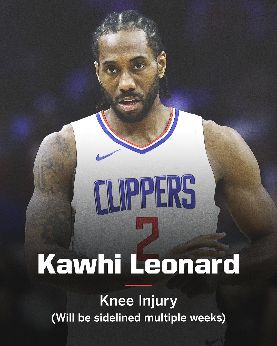 萊昂納德 膝蓋傷勢 缺陣數(shù)周