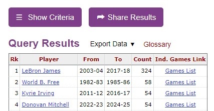 這樣一來(lái),米切爾騎士生涯30+場(chǎng)數(shù)已經(jīng)達(dá)到55次,超越歐文(54次)獨(dú)占隊(duì)史第3。