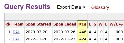 據(jù)統(tǒng)計(jì),獨(dú)行俠上一次在常規(guī)賽遭遇四連敗,還有追溯到2022-23賽季,他們?cè)?023年3月20日至3月26期間,接連不敵黃蜂(2次)、勇士和灰熊。