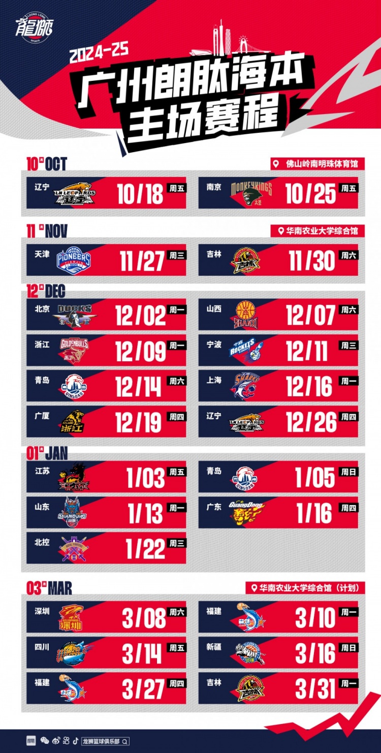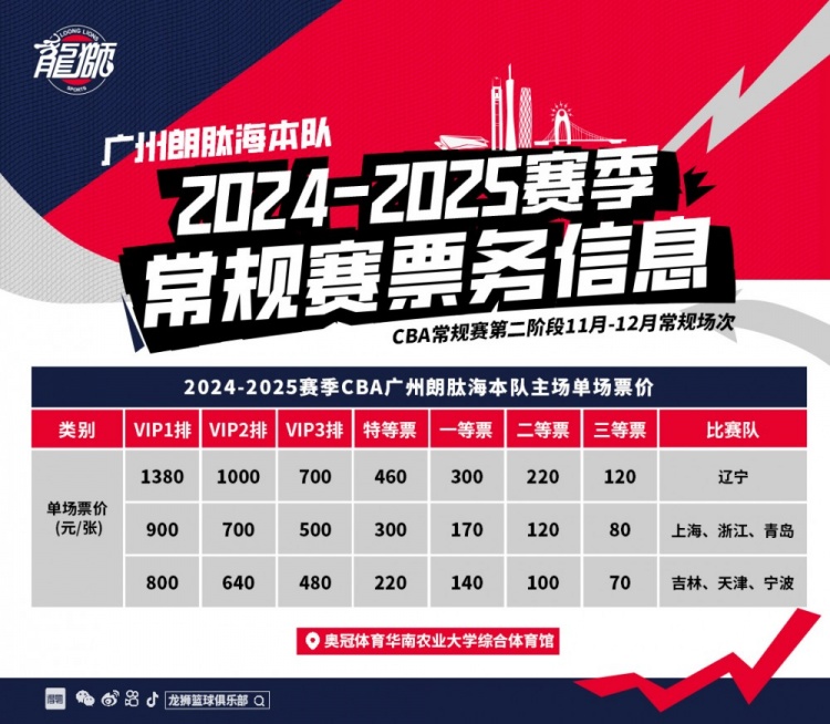 廣州次階段主場移師華南農(nóng)業(yè)大學(xué)綜合體育館 門票今晚8點(diǎn)正式上線