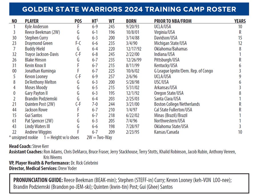 驚不驚喜?李凱爾是勇士全隊(duì)第二高!大概率要打中鋒了 發(fā)布時(shí)間: 2024年10月01日 20:53 來(lái)源:網(wǎng)絡(luò) 10月01日訊 今天的媒體日,勇士公關(guān)部公布了球隊(duì)最新的大名單。大名單里,只有二輪秀昆滕-波斯特身高達(dá)到了7英尺(2.13米),其他全在7英尺下方,第二高是李凱爾和盧尼了,兩人都是6英尺9英寸(2.06米),TJD則是2.03米。 標(biāo)簽: 籃球 比賽集錦 WNBA 籃球 勇士 NBA 李凱爾
