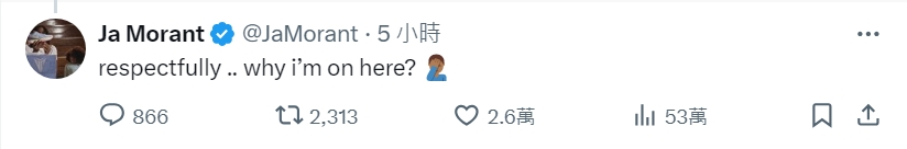 被認(rèn)為新賽季會有大進(jìn)步!莫蘭特:禮貌發(fā)問 這是為何? 發(fā)布時間: 2024年10月10日 07:33 來源:網(wǎng)絡(luò) 10月10日訊 在NBA總經(jīng)理的調(diào)查中,“最有希望迎來一個巨大進(jìn)步的賽季”的問題上,莫蘭特獲得了10%的投票排在并列第二。莫蘭特今天看到了NBA TV做的特效圖,評論表示:“禮貌發(fā)問……為什么我會在這個名單上?”莫蘭特上賽季因傷以及因為持槍事件只打了9場比賽;他的NBA生涯至今場均22.5分4.8籃板7.4助攻。 標(biāo)簽: 籃球 NBA 灰熊 莫蘭特