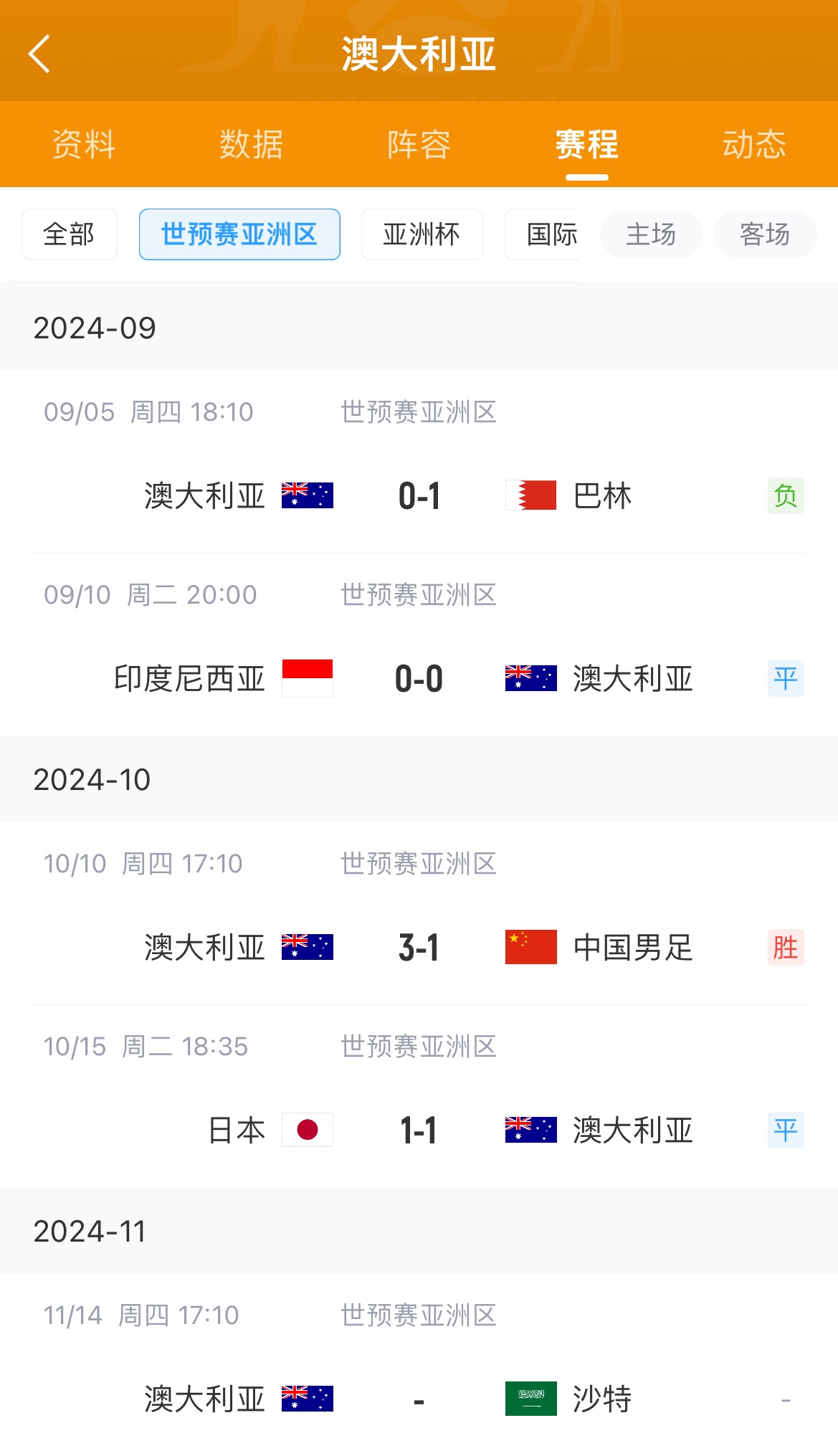 11月14日訊 世預(yù)賽亞洲區(qū)第三階段C組第5輪先賽1場,澳大利亞與沙特互交白卷后分列小組第二第三,兩隊前5輪均只有1勝。