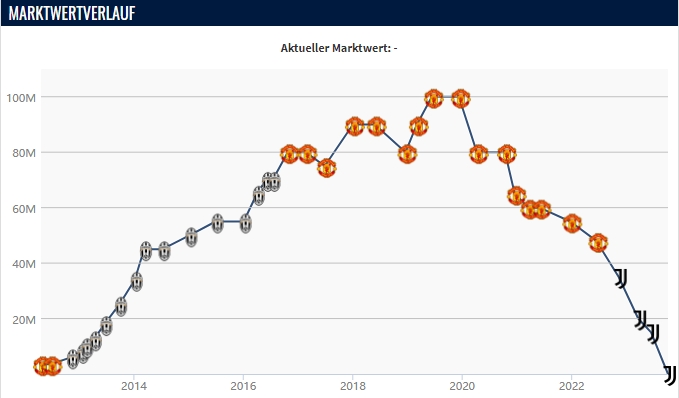 而從2020年開始,博格巴身價不斷下跌,最終在經(jīng)歷興奮劑事件之后,博格巴身價正式歸零。