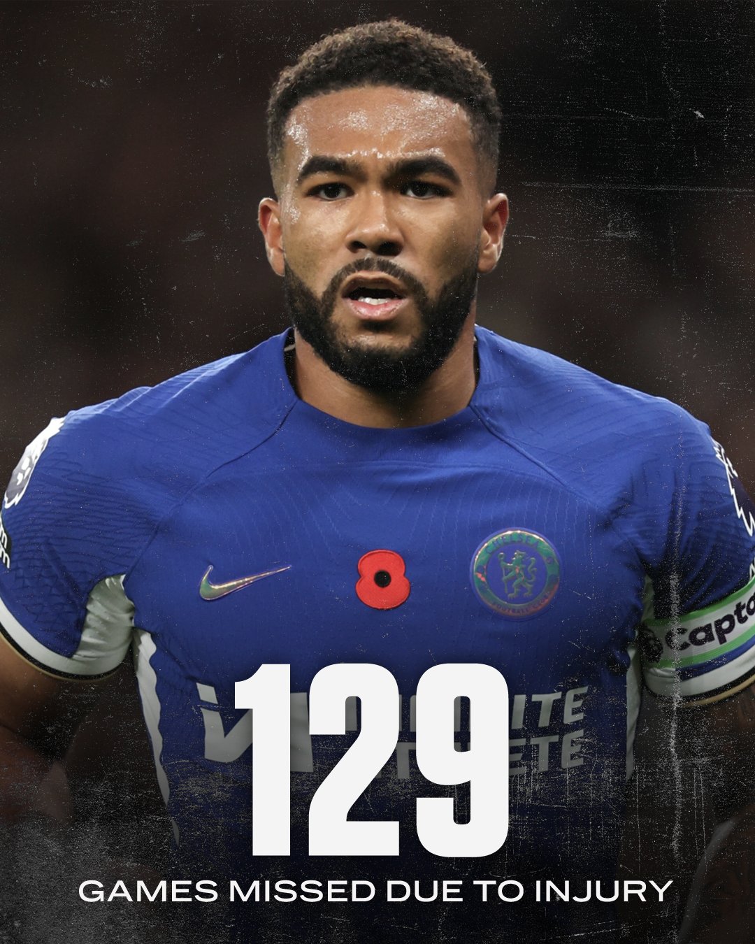 ESPN統(tǒng)計(jì),里斯-詹姆斯在一線隊(duì)五年時(shí)間中因傷缺席了129場(chǎng)比賽。