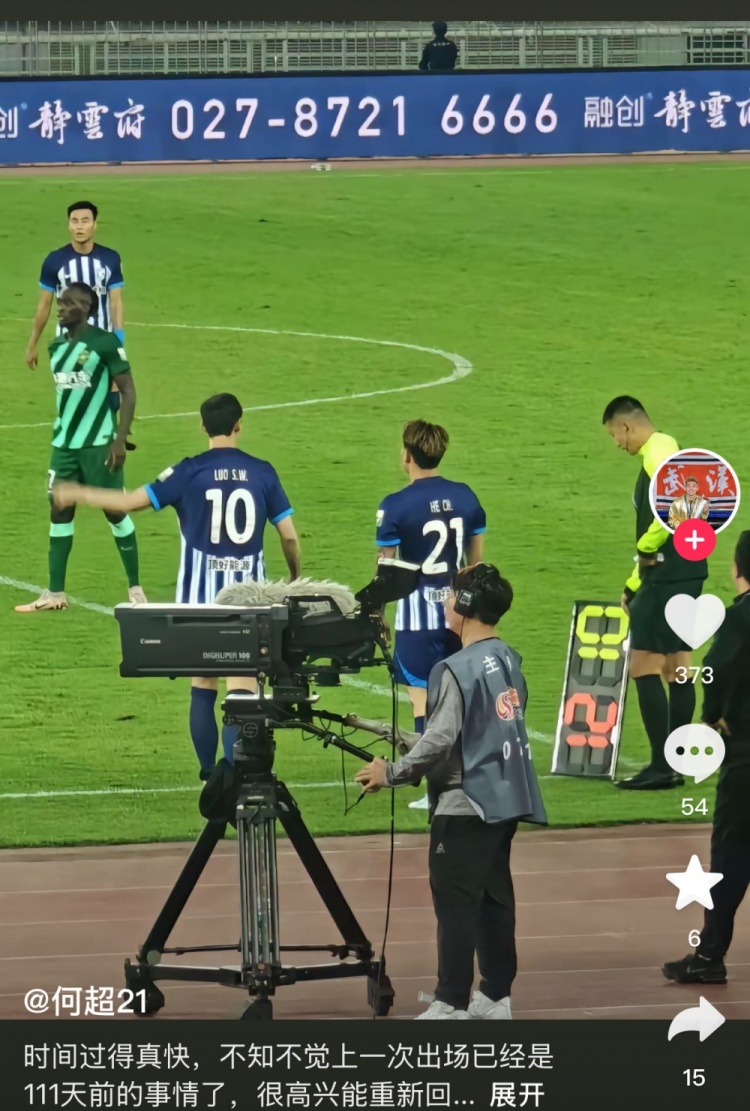 10月19日訊 昨晚中超第28輪比賽替補(bǔ)登場(chǎng)后,武漢三鎮(zhèn)球員何超賽后在社媒發(fā)文,感慨自己終于復(fù)出。