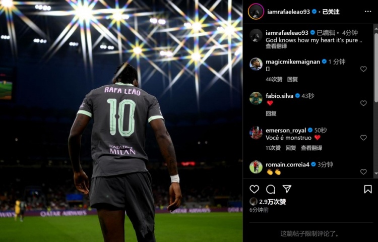 這是啥意思?萊奧贏球后更新社媒:上帝知道我的心有多純潔... 發(fā)布時(shí)間: 2024年10月23日 22:12 來(lái)源:網(wǎng)絡(luò) 10月23日訊 歐冠聯(lián)賽階段第三輪,米蘭3-1擊敗布魯日,取得本賽季歐冠首勝。賽后,萊奧更新了社交媒體,但似乎有些意味深長(zhǎng)。萊奧曬出自己的背影,并寫(xiě)道:上帝知道我的心有多么純潔...本場(chǎng)比賽,萊奧在第60分鐘被換下。他7次成功過(guò)人、10次成功對(duì)抗,均為全場(chǎng)最多。 標(biāo)簽: 足球 意甲 AC米蘭 歐冠